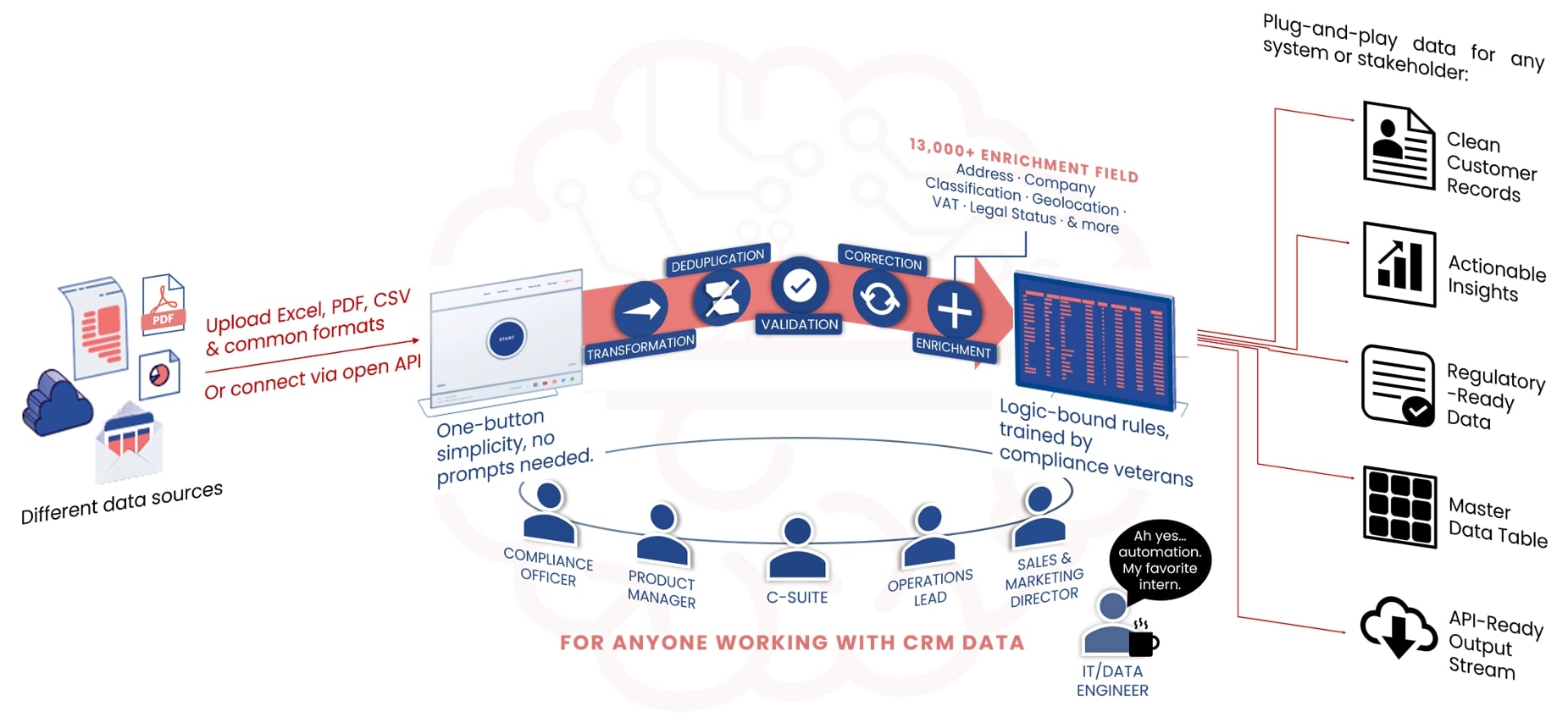 Our platform is cloud-native andAI-powered, designed to handle everything from regulatory reporting to messy,multilingual datasets. Delivered as a service, AiQA requires no client-sideinstallation or manual maintenance. It scales with your needs and intelligentlyadapts to your data — detecting patterns, inferring structure, and generatingexplainable outputs across use cases.